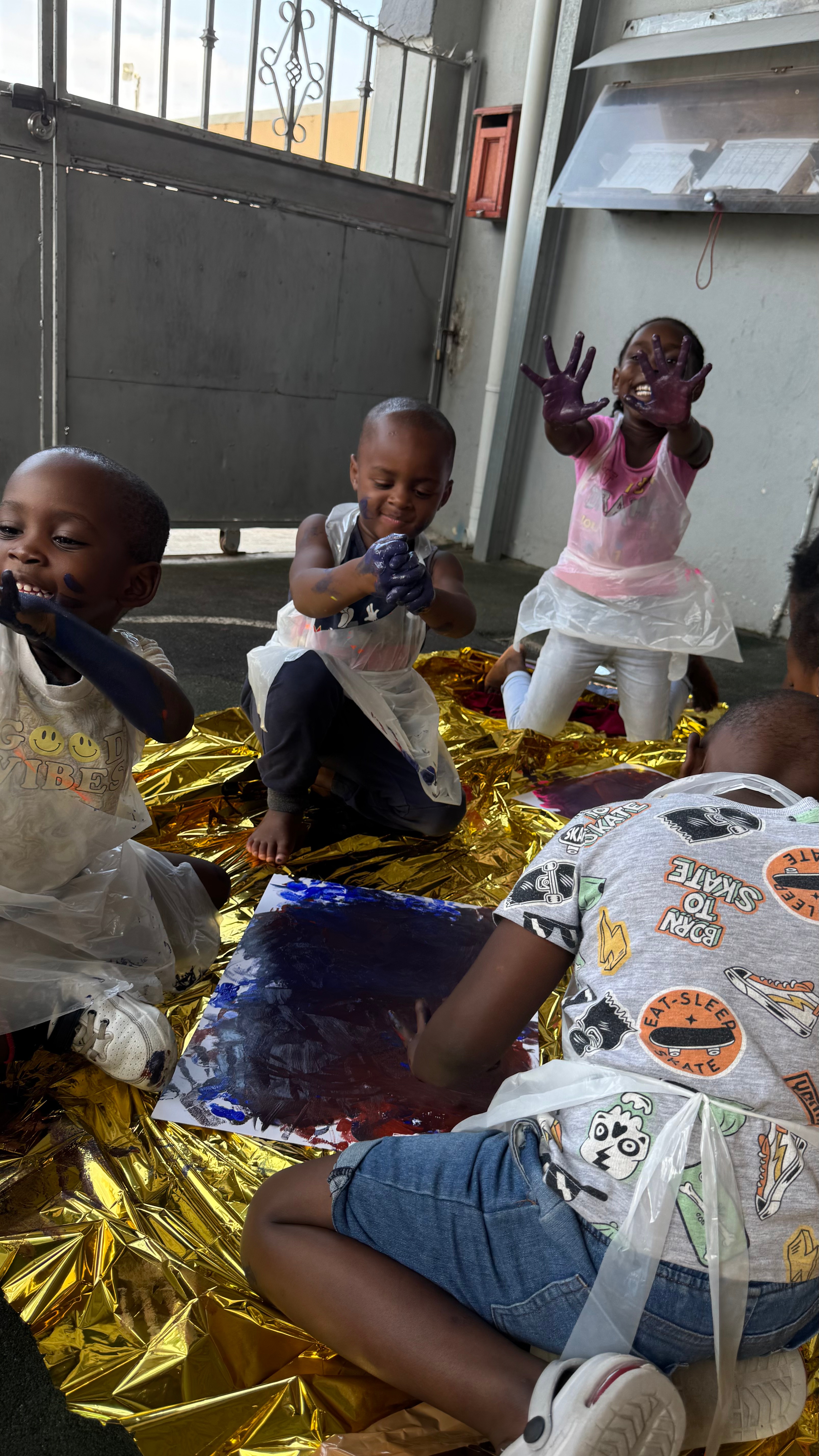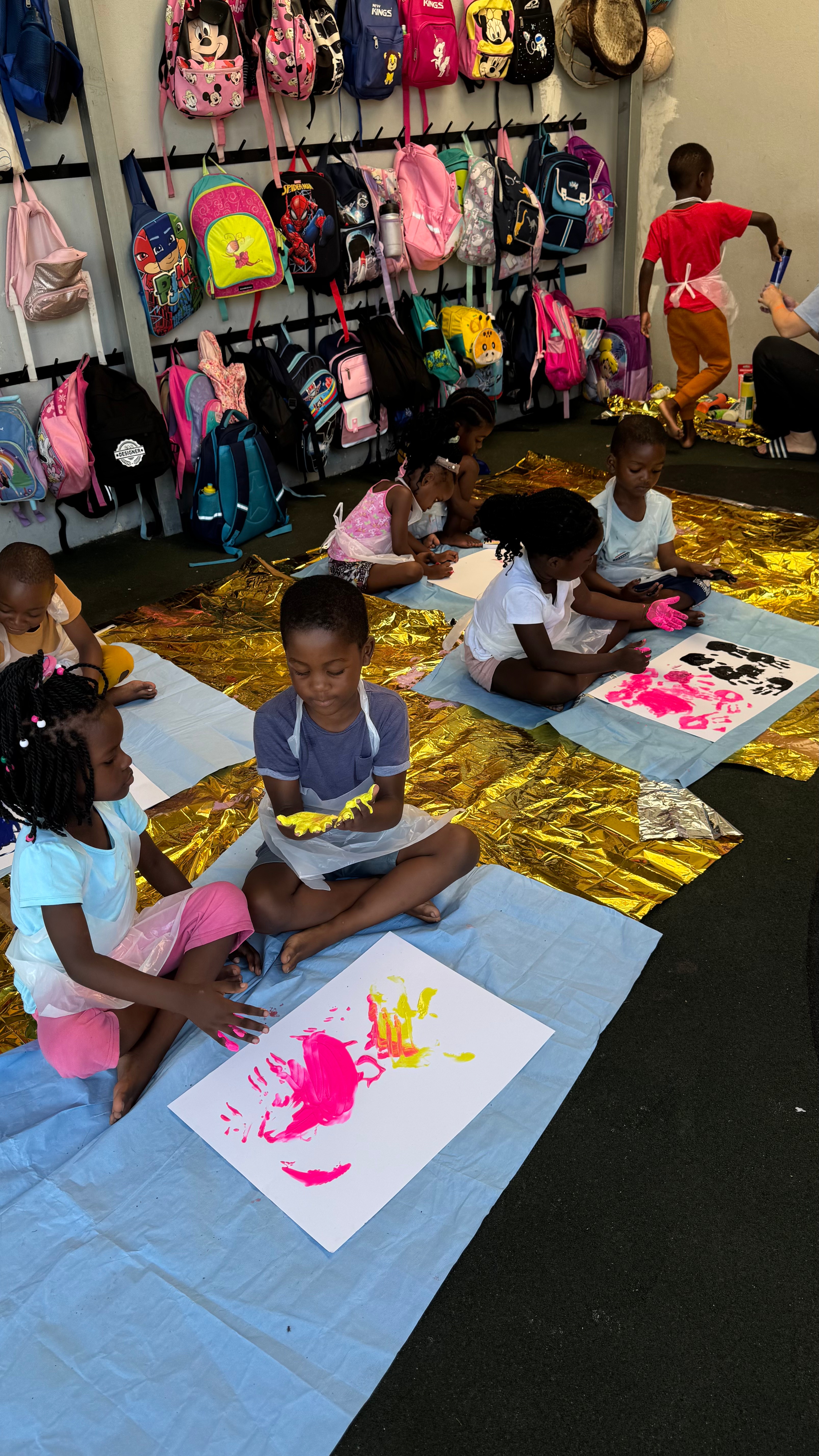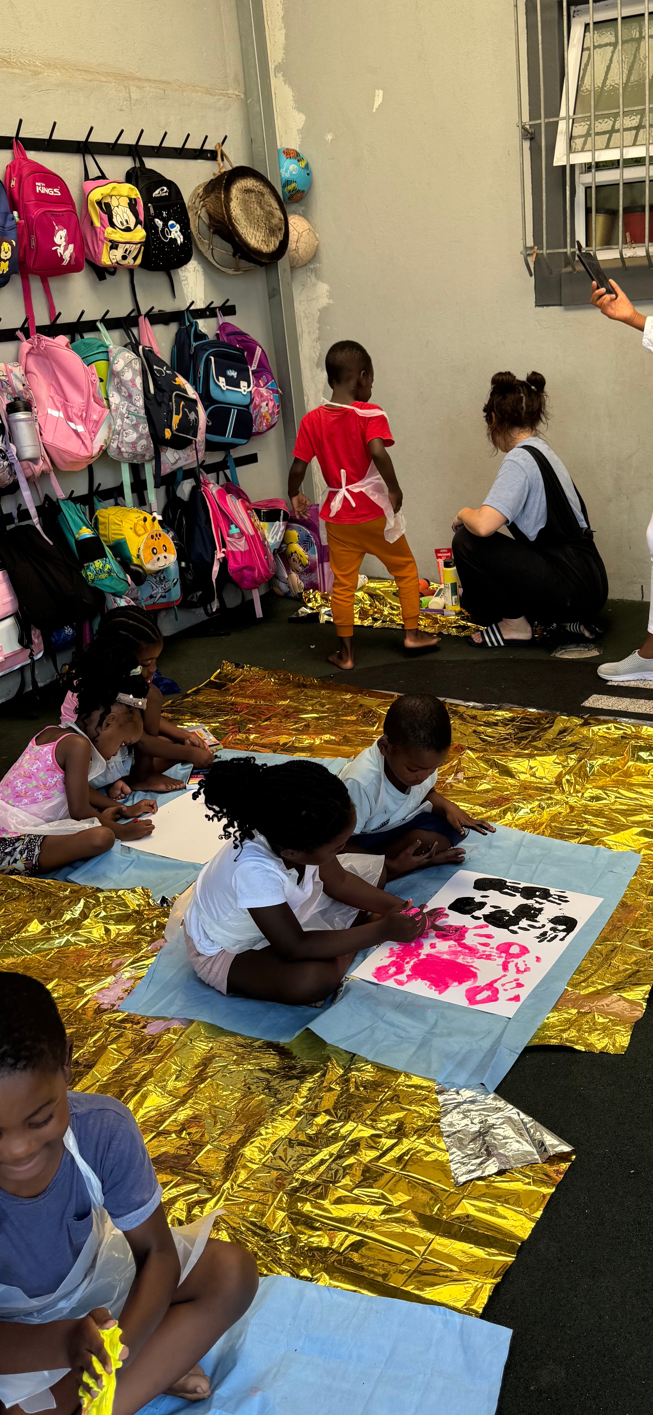 I organised and facilitated a painting workshop with the children, with the aim of selling their artworks to fund winter carpets for the preschool.